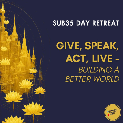 Please be aware that none of the classes/events run by the Cambridge Buddhist Centre is aimed at under-18-year-olds. All under 18-year-olds must be accompanied by their parent or another responsible adult over the age of 18 (with their parent's permission). Please contact us in advance of attending at info@cambridgebuddhistcentre.com so we can assess how suitable the event is for the young person and how we can safely enable them to engage in a class.